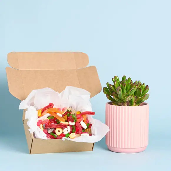 Create a bespoke succulent gift box that's just for them by adding on items from our fun range of extra goodies. Choose from organic tea leaves, chocolate, sweet treats, drink gift sets, scented candle options and more, all handpicked from the best Australian small businesses around.