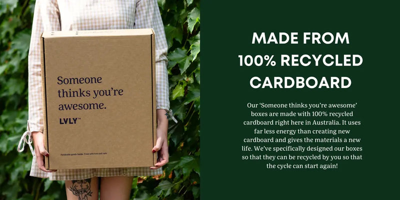 Prioritising sustainability is not a happy accident - it’s part of our DNA. Our philosophy is about being 'lovely to people, lovely to Australia and lovely to the planet. It’s the core of what we do. From our packaging, to the way we source our flowers, and the people we choose to do business with, doing good for the earth is always on our mind. While we aren’t perfect, we’re pretty proud of what we’ve achieved so far, and we’d love to share it with you!
